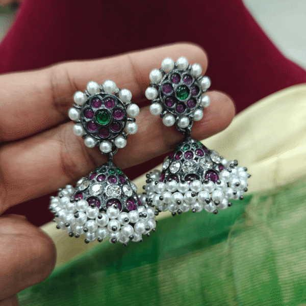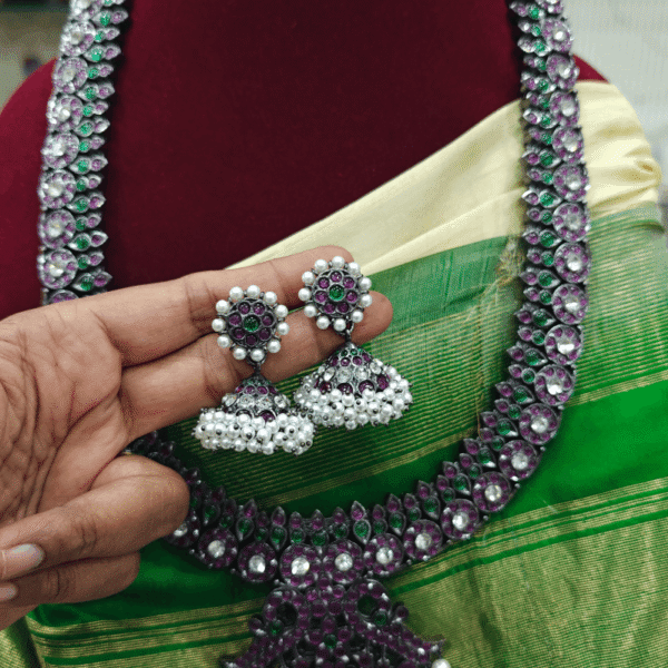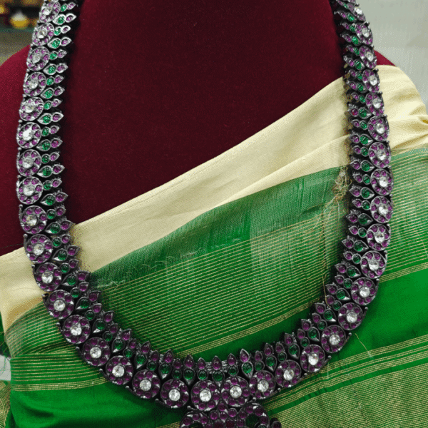 | Settings | 5 Betel leaf inspired real kemp black polish necklace remove | Premium kemp black polish mango haaram (Pre order) remove | Real kemp poo attigai (Black finish) remove | Nritya mango haaram with jhumkha (Black polish) -Pre order remove | Real kemp poo padhakkam necklace (Black finish) remove | Nritya black polish jhumkha (Pre order) remove | ||||||||||