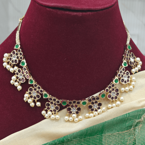 | Settings | 9 Betel leaf necklace remove | Maanga real kemp black polish necklace remove | Sattriya jhumkha remove | Real kemp red stone black polish attigai remove | Nritya mango haaram with jhumkha (Black polish) -Pre order remove | Padmini kemp attigai remove | ||||||||||||