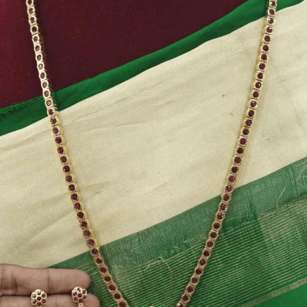 Name | Attigai style ruby kal haaram remove | Emerald mango pearl cluster haaram remove | Maangai antique haaram with jhumkha remove | Lakshmi bridal set haaram remove | Lakshmi bridal haaram with earrings remove | Padhakkam haaram with green beads gold balls chain remove | ||||||||||||