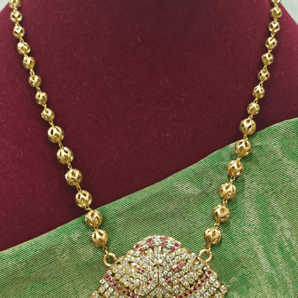 | Settings | Butterfly impon pendant with lotus chain remove | Solitaire pendant chain set remove | Kundan jadau maanga attigai set (Black) remove | Double peacock flower pendant with salangai chain remove | Peacock chain set (Mint green) remove | Kundan jadau maanga attigai set (Blue) remove | ||||||||||||||