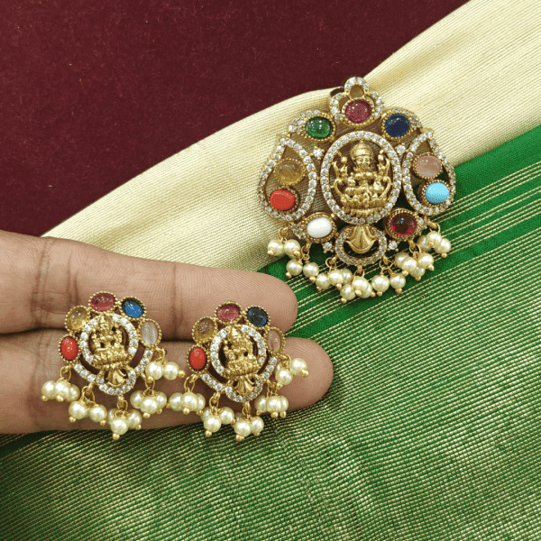 Description | Ganda berunda pendant set with ruby stones long chain | Mayil padhakkam pendant with kemp and kundan stones | Panchajhumkha pendant set with double line ball chain | Lakshmi navratna pendant set with earrings | Blue stones lakshmi pendant with ball chain | |||||||||||||