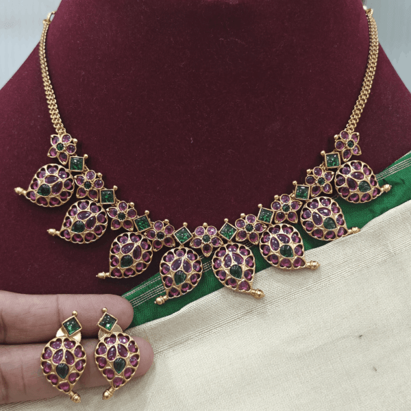 NameMaanga kemp necklace (Red green) removeLotus hasli choker set (3 lotus) removeFlower kundan kemp choker removeRuby white mango haaram removeJadau lakshmi necklace set removeBlack rope maanga necklace with maanga stud remove