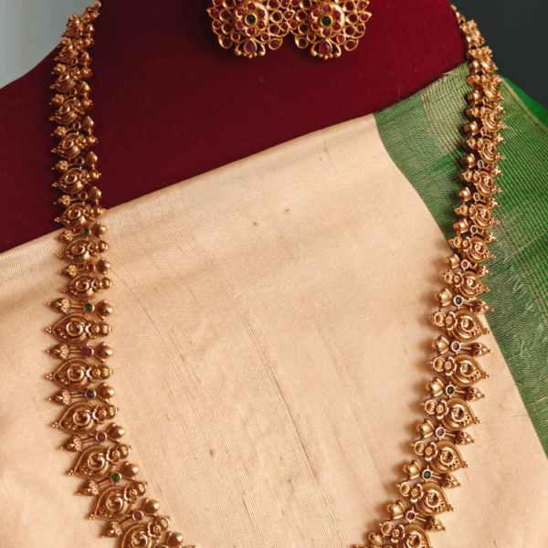 | Name | Mango peacock kemp haaram remove | Annam leaf antique kundan haaram remove | Lakshmi diamond replica haaram remove | Antique annam kasu haaram with earrings remove | Guttapusalu haaram remove | Maangai antique haaram with jhumkha remove | ||||||||||||