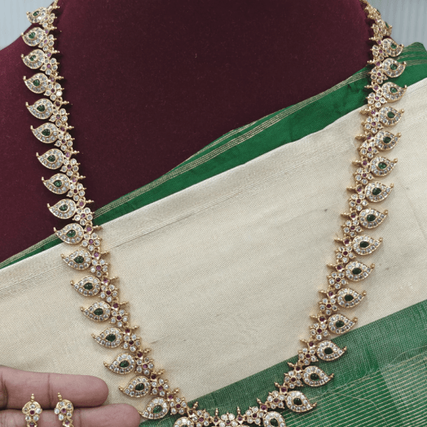 Name | Mango vellai kal haaram remove | Padhakkam haaram with green beads gold balls chain remove | Mullu haaram with jhumkhas remove | Annam leaf antique kundan haaram remove | Lakshmi netted pearl haaram with jhumkhas remove | Lakshmi bridal haaram with earrings remove | ||||||||||||