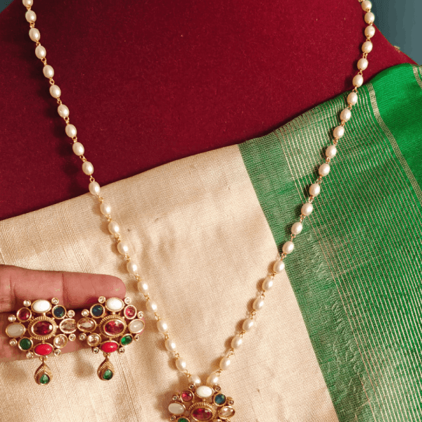 | Name | Navarathna pearl chain set remove | Peacock pendant set with pearl chain remove | Antique coral mala set remove | 5 line pearl choker with 5 changeable color stones remove | Gundu mani coral mala set remove | Pearl coral mani malai remove | ||||||||||