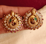| Description | Peacock chakra stud (ruby) | Suriya chakram fusion stud | Kundan tear drop stud (Green ruby) | Tear drop kemp stud (Red green) | Multicolor flower stud | Gaja ruby stud | ||||||||||||