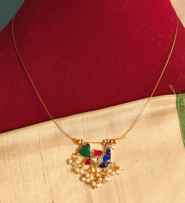 Peacock invisible chain with jadau pendant (multicolor)