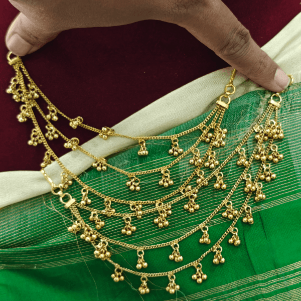 | Content | Peacock pearl ear chain | Mango flower ear chain | Lakshmi coin stone ear chain | Lakshmi coin ear chain | Peacock mango pearl ear chain | 3 line golden beads ear chain | ||||||||||||