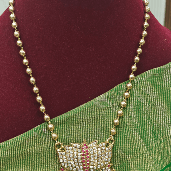 | Name | Thamarai impon gundu mani malai(Ruby white) remove | Double peacock chain set (green) remove | Parrot pendant chain set (Pink) remove | Peacock chain set (Mint green) remove | Ruby emerald lotus pendant set with chain remove | Double peacock flower pendant with salangai chain remove | ||||||||||