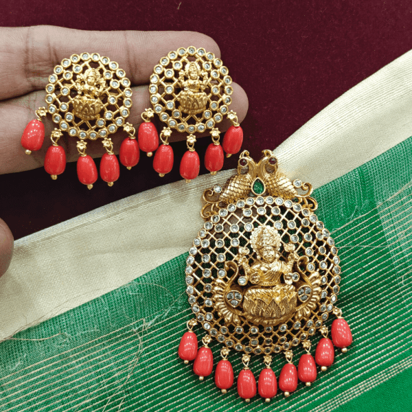 Thamarai lakshmi peacock pendant set (Coral)