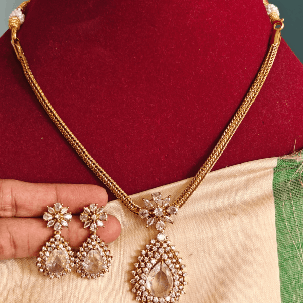 | Content | white flower tilak necklace set | 2 in 1 lakshmi flower kal necklace with two pair of earrings | Kundan jadau maanga attigai set (Turquoise blue) | Maanga kundan necklace (Blue) | Jadau lakshmi necklace set with chandbali earrings | |||||||||||||
